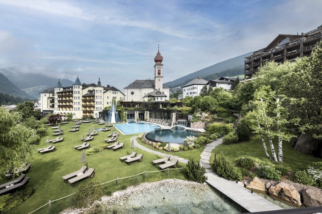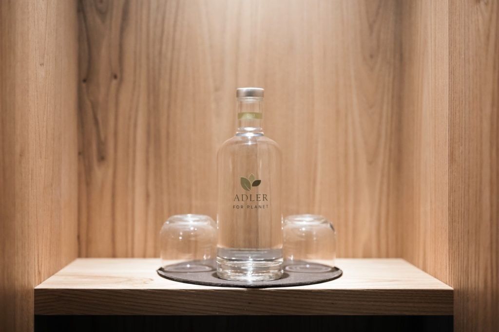 In unseren Gartenanlagen arbeiten wir mit überwiegend heimischer, klimagerechter Bepflanzung mit minimalem Bewässerungsbedarf. Alle unsere Hotels beziehen ihr Trinkwasser aus der jeweiligen Region – im ADLER Spa Resort DOLOMITI etwa aus der Confin-Quelle am Fuß des Langkofels –, stellen es den Gästen kostenlos zur Verfügung und verzichten bewusst auf Ein- und Mehrwegflaschen. Das reduziert zusätzlich Transportwege.