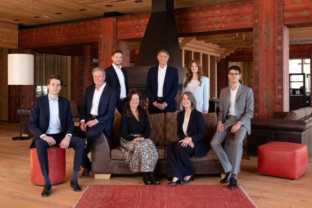 v.l.n.r.: Lukas Sanoner, Andreas Sanoner, Moritz Sanoner, Verena Sanoner, Klaus Sanoner, Karin Sanoner, Franziska Sanoner und Maximilian Sanoner – Familie Sanoner ist seit sieben Generationen das Herz der ADLER Hotels.